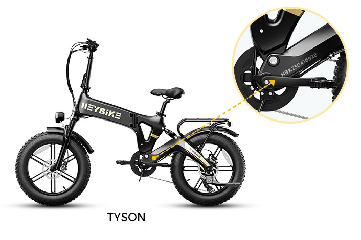 ③ The serial number is printed near the left pedal for e-bike model: Tyson.