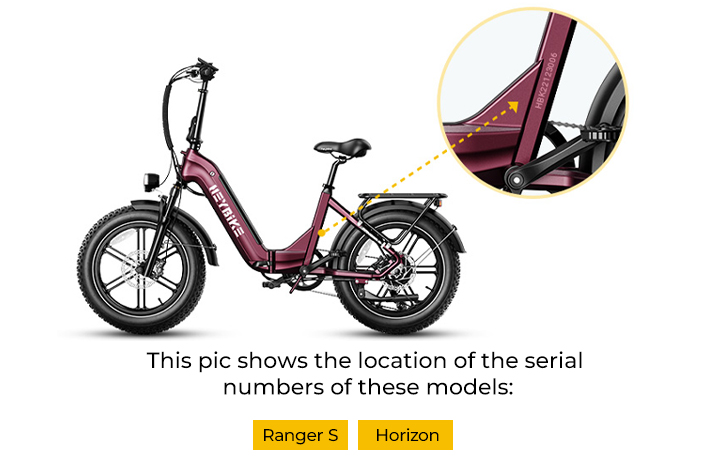 ② The serial number is printed at the bottom of the seat post for e-bike models: Ranger S, Horizon.